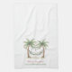 This fun coastal holiday inspired Christmas party kitchen dish towel features palm trees decorated with ornaments and a hammock. Personalize with your choice of special text. Great for personalized holiday party decorations and party favors.