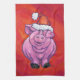 Linge De Cuisine Cochon mignon à Santa Hat sur rouge