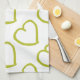 Linge De Cuisine Coeurs dessinés à la main vert sur blanc