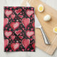 Red Hearts Motif artistique Valentine`s Day serviette de cuisine. Coeurs rouges et roses dessinés à la main sur arrière - plan noir. Pour la Saint Valentin ou pour montrer votre amour.