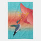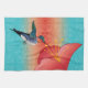 Linge De Cuisine Colibri de style tatouage et Ombre de fleurs rouge