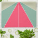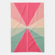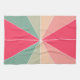 Un design avec des segments de 12 x 30 degrés chacun divisé avec une ligne blanche et dans une palette de 5 couleurs avec des segments contigus en haut et en bas en utilisant la même couleur créant une symétrie.