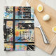 Colorful urban graffiti patchwork pattern kitchen towel featuring bold abstract blocks, expressive brush strokes, scribbles, stars, and mixed-media textures in bright blue, yellow, pink, orange, and black. Energetic and edgy with a modern street art aesthetic, this seamless design is ideal for graffiti art lovers, maximalist style fans, creative teens, and contemporary art enthusiasts.