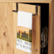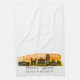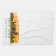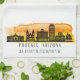 La conception de la serviette de cuisine présente la silhouette de l'horizon de la ville de Phoenix, en Arizona, avec un fond d'éclaboussure d'aquarelle de coucher de soleil et les coordonnées de latitude et de longitude de la carte.
