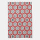 Serviette de thé japonaise traditionnelle d'impression de kimono - hexagones d'emboîtement avec un motif central de fleur dans le gris rouge, blanc et foncé chinois profond de graphite sur un gris argenté léger/arrière - plan gris