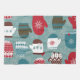 Ce design de Noël amusant présente des mitaines d'hiver dans une variété de motifs. Un motif de flocon de neige grace l'arrière - plan.