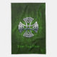 Une croix celtique en argent chromé audacieuse sur un arrière - plan vert magnifique. Personnalisez le texte avec n'importe quel nom ou message que vous souhaitez.