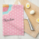 Augmentez le quotient de la gentillesse dans votre cuisine avec cette serviette de cuisine charmante avec un médaillon de cupcake qui peut être personnalisé avec N'IMPORTE QUEL nom et phrase !
