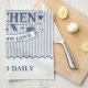 Décorez votre cuisine avec amour avec cette serviette à thé rayée bleue et blanche personnalisable qui présente une illustration d'une cuillère et d'un fouet accentuée de feuillage délicat et de cœurs simples. Inspiré par le style classique de la ferme, le design est complété par des bordures à bord festonné tendance et un texte personnalisable qui dit : « La cuisine de grand-mère – Fait avec amour. » Modifiez le nom et ajoutez votre propre sentiment comme « Des cookies frais et des câlins chauds servis quotidiennement » pour créer un cadeau unique parfait pour les anniversaires, la fête des mères, la fête des grands-parents, les remplissages de bas de Noël, ou simplement pour célébrer une grand-mère qui aime cuisiner et faire de la pâtisserie.