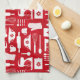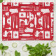Serviette de cuisine Red Retro avec un motif de style rétro mignon avec des ustensiles de cuisine et des fleurs rétro simples tout en rouge et blanc. Vous pouvez rendre le motif plus grand ou plus petit sur la serviette de cuisine.