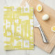 Serviette de cuisine Retro Jaune avec un motif de style rétro mignon avec des ustensiles de cuisine et des fleurs rétro simples tout en jaune et blanc. Vous pouvez rendre le motif plus grand ou plus petit sur la serviette de cuisine.