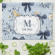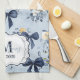 Linge De Cuisine Custom Elegant Blue Bow Floral Monogram