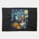 Cute Basset Hound Dog Halloween Jack O Lantern Pumpkin Face Starry Night Van Gogh Style