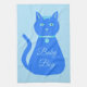 Cette superbe serviette de cuisine présente l'image art numérique d'un mignon chat bleu avec une queue bouclée. Ses yeux sont bleu pâle avec des élèves noirs. Il porte un arc rose dans ses cheveux et un collier bleu brillant autour du cou avec un jeton bleu dessus. Le design est parfait pour célébrer un bébé garçon. Il y a du texte personnalisé sur le chat pour que vous puissiez inclure votre propre message. Le message par défaut indique Baby Boy.