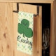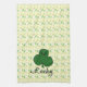Adorable mignon shamrock kawaii en vert avec le mot "chanceux" en dessous. Une façon amusante et douce de célébrer la Saint Patrick ou des jeux pour enfants irlandais pendant la saison de la chance. Shamrock de dessin animé vert avec texte noir et motif arrière - plan jaune et vert. Ce design est disponible en tant qu'ensemble assorti !