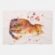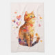 Une serviette de cuisine avec une adorable illustration aquarelle. Un chat tabby orange qui a l'air amical et heureux de voir les coeurs tourbillonner autour.