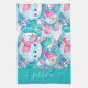 Cute turquoise snowmen script name kitchen towel. Personalize name.
