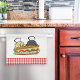 Cute Yellow Lab Black Lab Cartoon Serviette de cuisine Sandwich pour les propriétaires du Labrador. Le Labrador Jaune et le Labrador Noir aiment manger un sandwich Jumbo que les deux chefs de chien ont préparé. Faites-vous sourire en travaillant dans la cuisine avec cette serviette de cuisine joyeuse avec Labrador Duo. Créé par Naomi Ochiai.