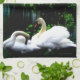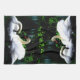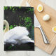 La photographie de beaux-arts comportant des cygnes muets de deux blanc élégant, noir et orange dans un lac est éditée pour lui donner suite painterly. Le feuillage et les ondulations verts riches placent l'arrière - plan pendant que le ciel et les arbres créent des réflexions sur l'eau foncée.