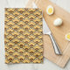 Serviette de cuisine dans un pétoncle chinois, ou motif à vagues, traditionnel dans le textile et l'émail, en or moutarde riche, chocolat, et crème, accentué de cacao brun