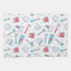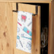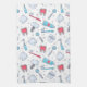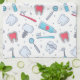 Serviette de cuisine avec motif dentaire à thème. Avec des illustrations colorées de dents, brosses à dents et divers outils dentaires.