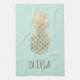Linge De Cuisine dessin d'ananas en feuille d'or faux sur menthe