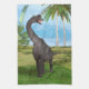 rendu numérique 3D d'un dinosaure Brachiosaurus sur l'arrière - plan du ciel bleu et des palmiers verts