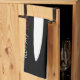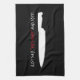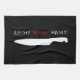 Une serviette de thé 40,6 x 61 cm en noir représentant une silhouette blanche du couteau d'un chef avec les mots "DITES "OUI CHEF" ET FAITES-LE !".