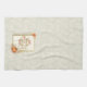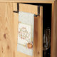 Serviette de cuisine qui dit, "Donnez Merci avec un coeur gracieux" dans une police manuscrite, entourée d'un cadre de parties scintillant citrouille et feuille moderne. L'arrière - plan de serviette a une feuille subtile et un motif de glacier.