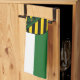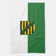 Serviette de cuisine avec drapeau de variante de Saxe; design avec deux bandes horizontales de vert et blanc, et avec armoiries de l'état au centre