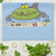 Linge De Cuisine Drôle gras affamé poisson vert dessin de pêche