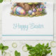 This kitchen towel is shown in white with a festive Easter bunny print.