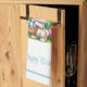 This kitchen towel is shown in white with a festive Easter bunny print.