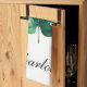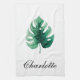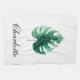 Le design branché des serviettes de cuisine est orné d'une feuille de monstère vert aquarelle peinte à la main. Le texte est personnalisable.