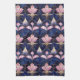 Elégante Iridescente rose Lotus Faux Verre tendu Design Motif avec des accents bleu marine arrière - plan et or