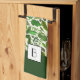 Linge De Cuisine Élégant Monogramme Motif végétal vert