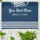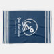 Elégante serviette simple et design. Ce design de style marin bleu et blanc côtier avec accent d'ancrage de bateau encadré par une corde ronde et des vagues de l'océan, avec des bandes sur les côtés. Ce jeu de couleurs bleu marine classique et blanc sera parfait comme cadeau nautique personnalisé.