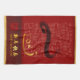Peinture de lavage originale d'un serpent par RB. Conception d'une serviette de cuisine verticale avec diverses calligraphies chinoises d'idéogrammes de Fu (signifiant chance) en un arrière - plan rouge + calligraphie chinoise ancienne pour serpent + Voeux en chinois et anglais encadrés de papier texturé doré (image imprimée). Carte de voeux et carte postale de vacances.