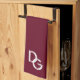 Linge De Cuisine Elégante Bourgogne avec Initiales en dentelle blan