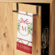 Elégante aquarelle peinte à la main Crest avec verdure hivernale avec vos Initiales au milieu et treillis arrière - plan serviette de cuisine de vacances.