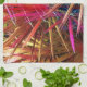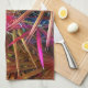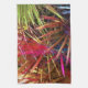 Dans l’oeuvre originale et abstraite de ZoeSPEAK sur cette serviette de cuisine, l’émeute tropicale des couleurs a été réalisée à partir de la photo originale de Zoe de scie palmetto. Certaines frondes de palmiers restent vertes, mais d'autres sont devenues roses chaudes et rouges, jaunes, bleus et bruns chauds, car elles zigzaguent entre elles dans la pinède.
