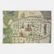 Illustration vintage d'une carte antique du monde représentant une partie de l'empire aztèque dans le centre du Mexique avec un temple au centre probablement utilisé pour des sacrifices humains. L'église ou le temple est entouré d'un cimetière avec des pierres tombales et des croix. Vers 1577. Aztèque fait référence au peuple Mexica de Tenochtitlan, maintenant l'emplacement de Mexico.