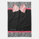 Une serviette empreinte de léopard en noir et blanc tendance avec un joli ruban rose enveloppé comme un cadeau. Personnalisez en ajoutant votre nom. Un cadeau parfait pour une fille ado !