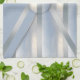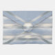 Fabriqué à partir d'une photo originale de ZoeSPEAK d'un ciel orageux sur l'océan, le design de cette serviette de cuisine ressemble à une enveloppe coussin, avec des rubans argentés qui sillonnent les douces nuances arrière - plans de bleus, gris et blanc pâles. Le rabat de l'enveloppe est en tissu texturé gris bleu avec un bord argenté, et des rubans suivant les bords diagonaux. Des rubans argentés horizontaux traversent l'arrière - plan du ciel, et au centre se trouve une grande fermeture de bouton rond.
