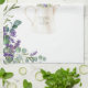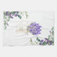 Cette conception présente une aquarelle illustrant le feuillage d'eucalyptus et les fleurs de lavande violette. Au centre, la lavande de style vintage fleurit dans un bocal métallique.