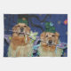 Cette serviette de cuisine comporte les chiens d'arrêt d'or habillés comme fées tenant les baguettes magiques magiques dans leurs bouches.