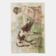 Cette serviette de cuisine vintage avec du charme a une image d'une fille et d'un veau là-dessus.