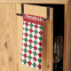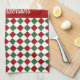 Nom de famille personnalisé Festive Élégant Serviette de cuisine de Noël rouge et vert.