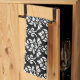 Linge De Cuisine Feuille Damask Grand Motif blanc sur noir