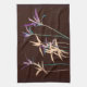 L’oeuvre impressionniste de ZoeSPEAK sur cette serviette de cuisine a été réalisée à partir de la photo originale de Zoe de feuilles mexicains de pétunia, et de leurs ombres contre un mur. Les feuilles sont dans les tons violets, lavande et verts, avec de longues tiges vertes et des ombres crémeuses beiges. L'arrière - plan est texturé, gris très foncé à noir.
